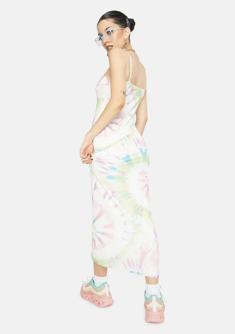 cuz youΓ’ΒΒre goinΓ’ΒΒ wild. This maxi dress has adjustable shoulder straps and a tie dye pattern all over.
