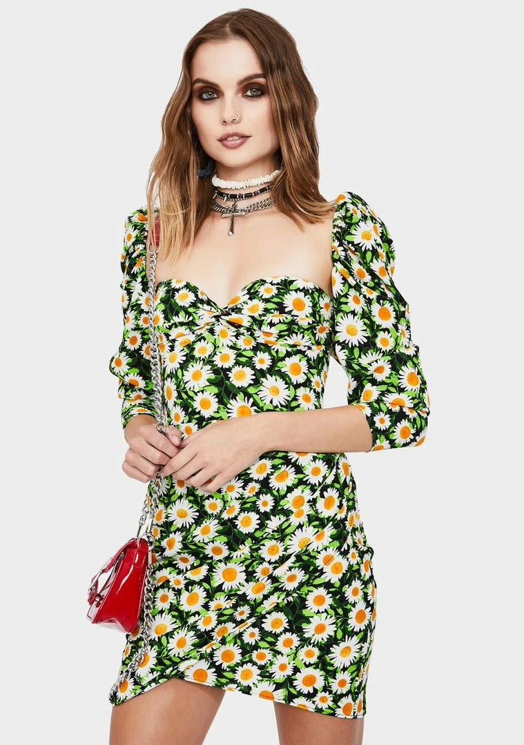 you’re sweeter than sugar, babe! This long sleeve mini dress has a ruched bust and sleeves, a sweetheart neckline, and a bright floral print all over.