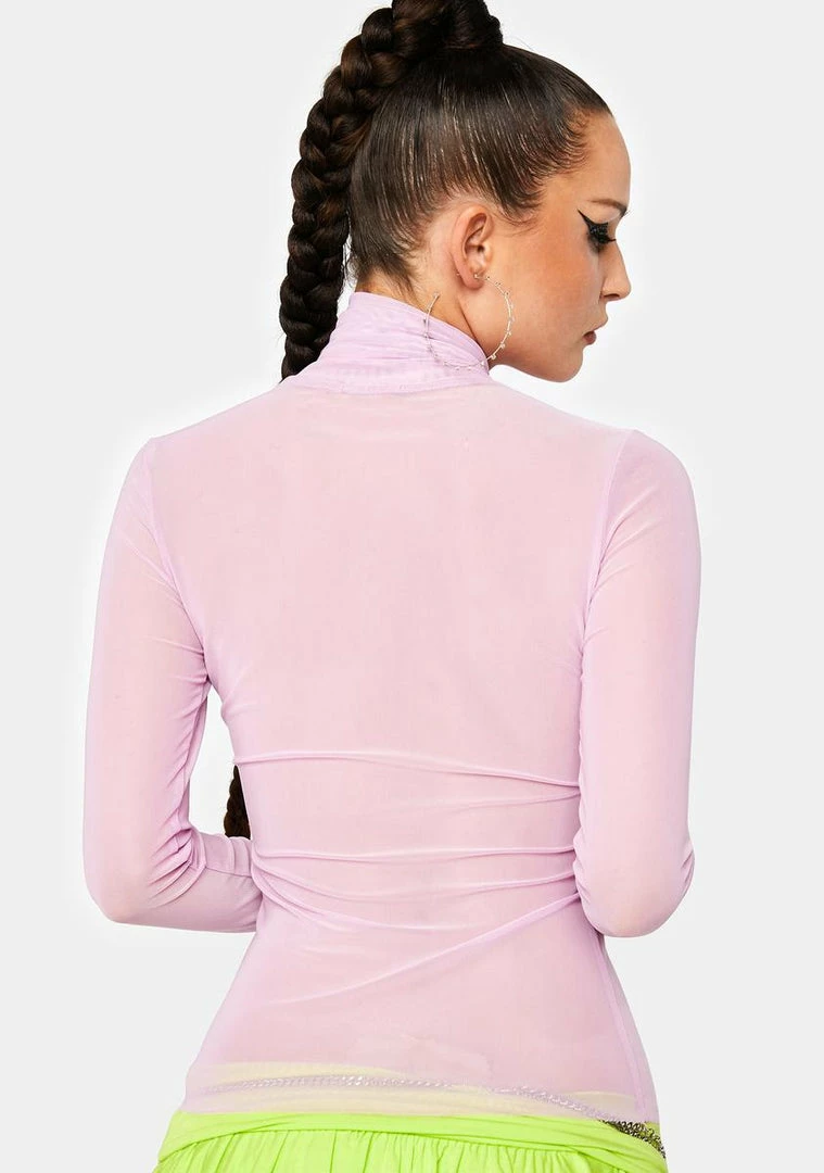 keep it sweet, keep it sassy, babe! This power mesh turtleneck top has long sleeves, thumbhole cuffs, and a bodycon fit.