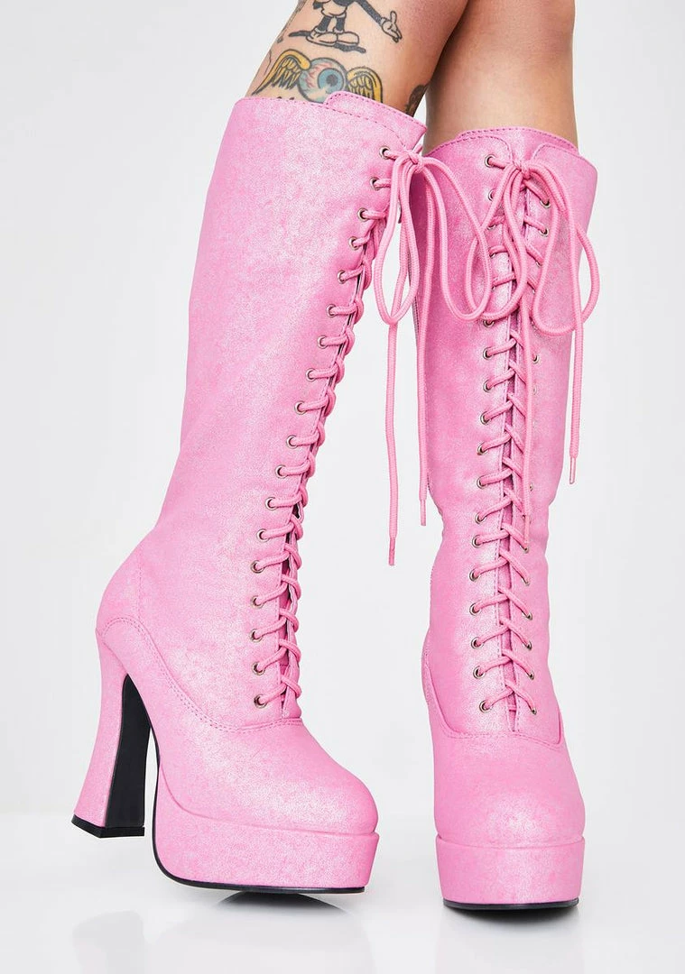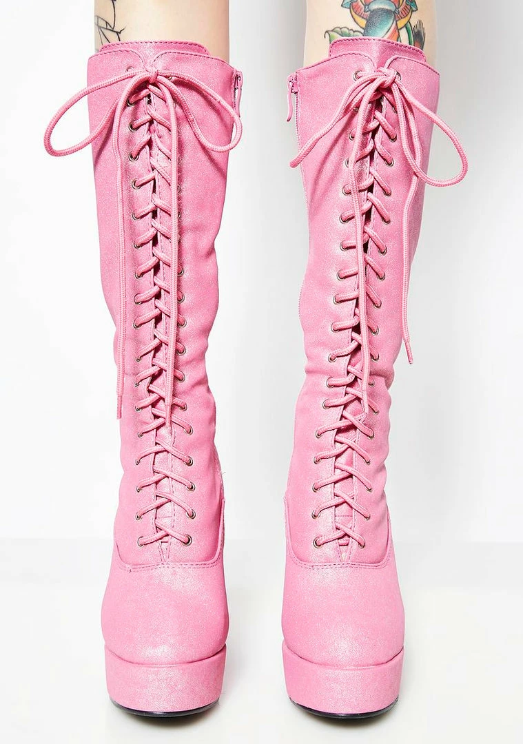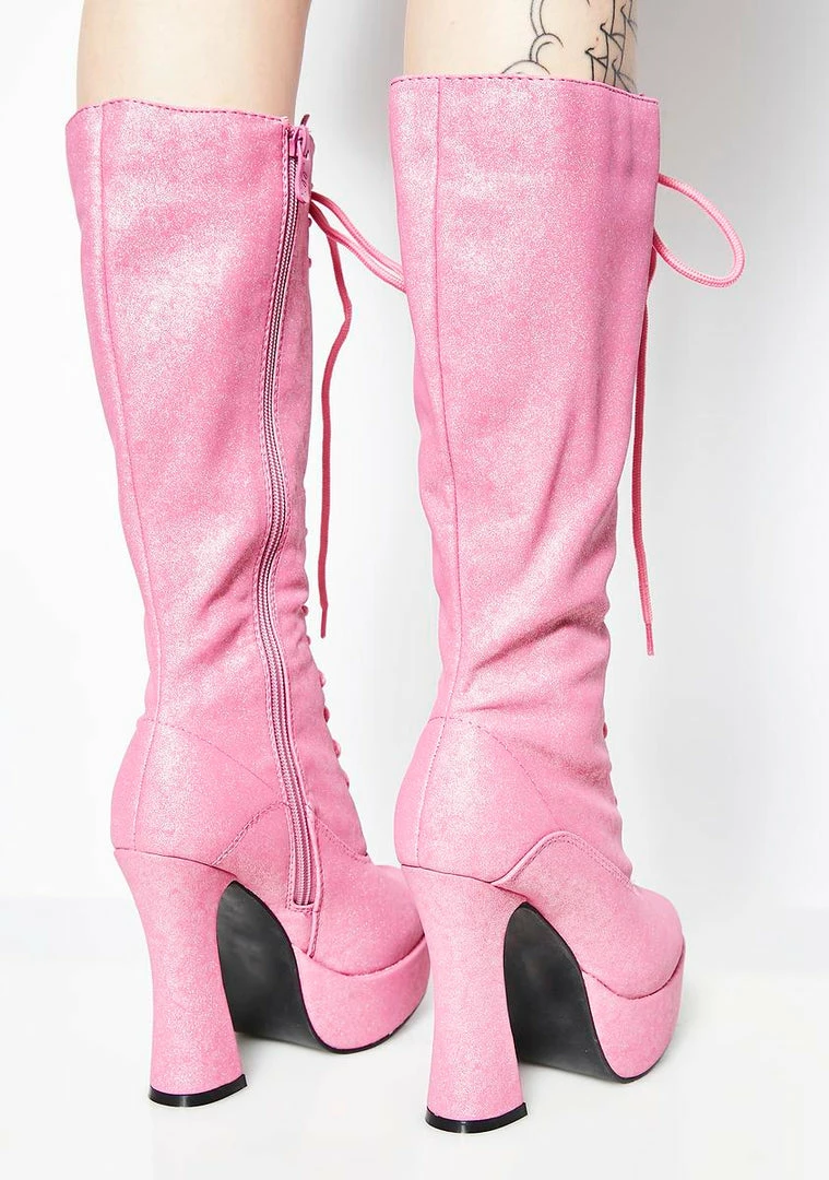 cuz ya live life in the fab line. Slay in these sikk AF sparkly platform gogo boots that lace-up the front with rounded toes and side zipper closures.