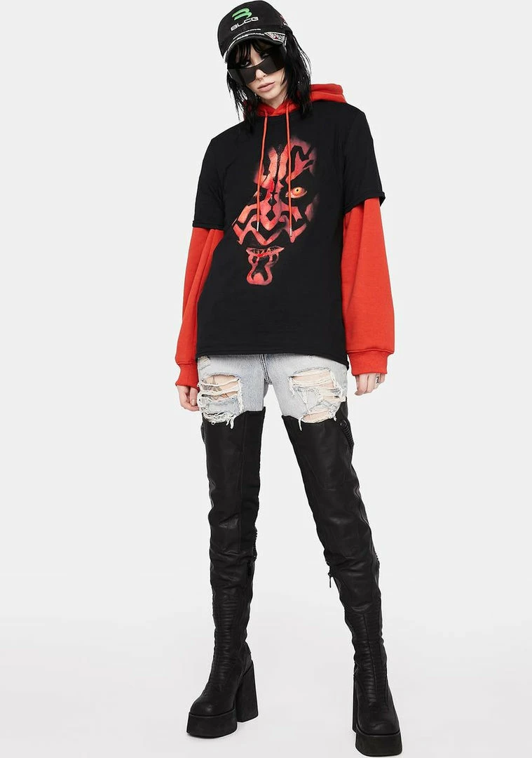 evil is among us. This cotton tee has a large Darth Maul graphic print across the front.