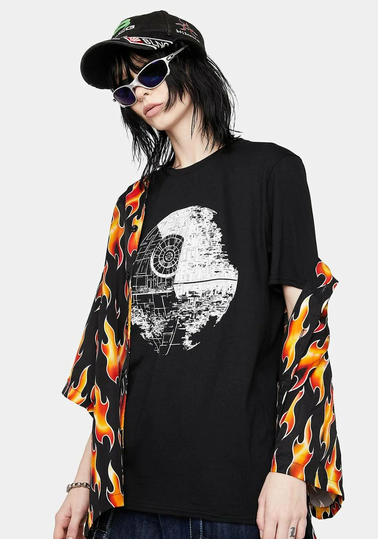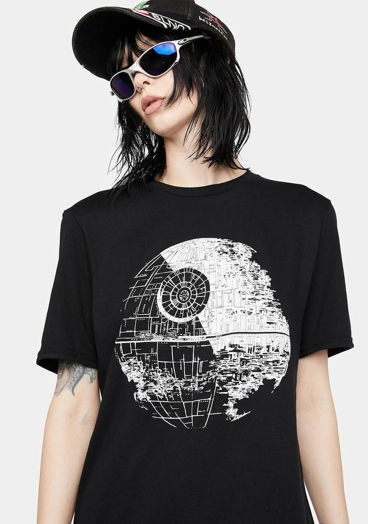 cuz you may not be from a galaxy far, far away, but you can dress like it! This graphic tee has a death star graphic at front, short sleeves, and a crew neckline.